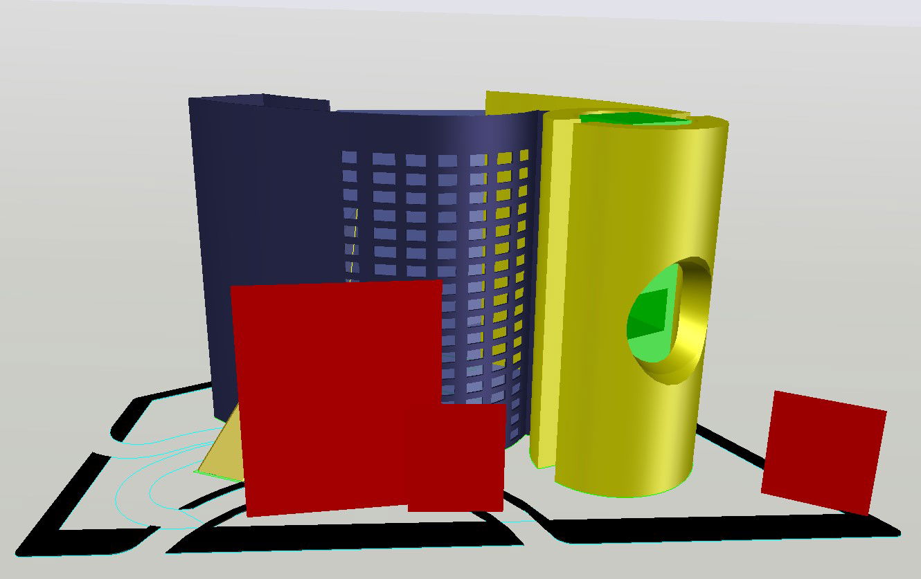 3D drawing of office building in autocad it include floor level,parking area,etc