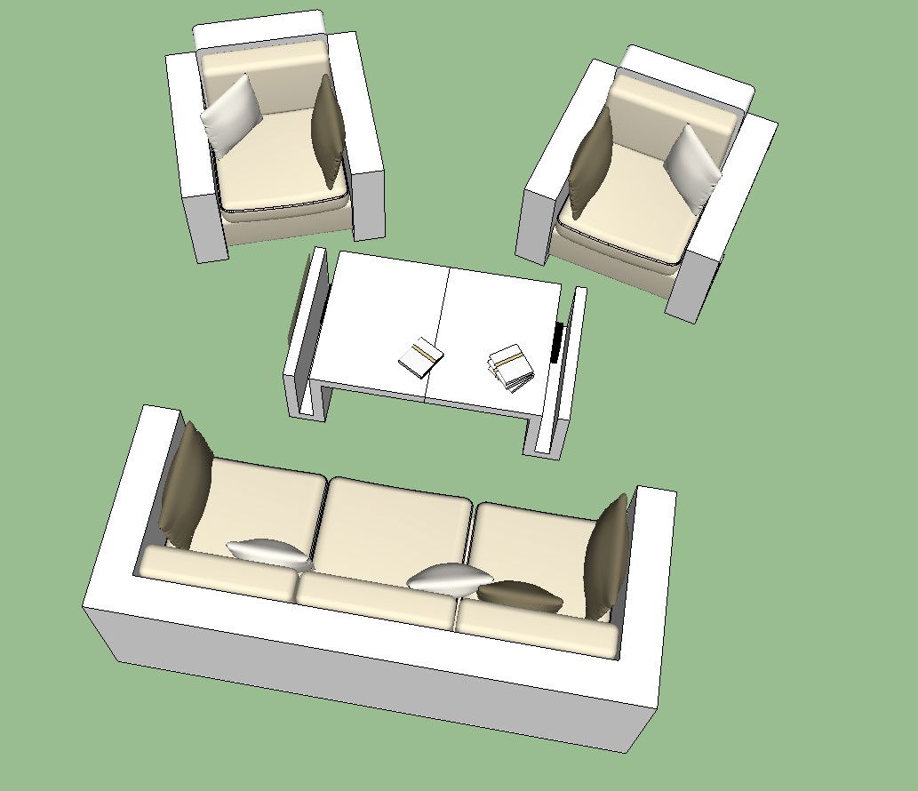 3D drawing of sofa in sketchup it include one seater,three seater sofa,center table,etc