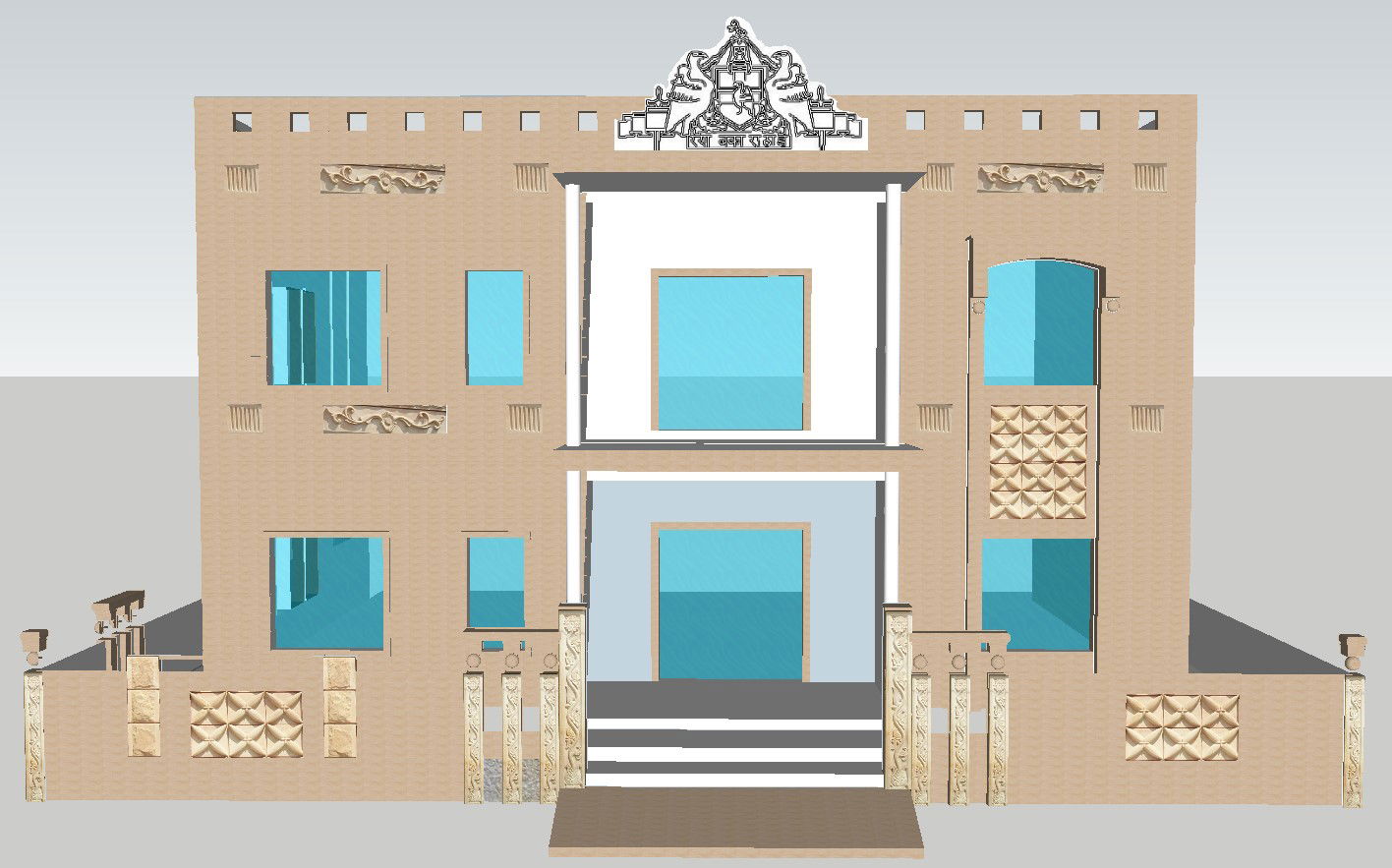 3D drawing of bungalow it include floor level, traditional touch, verandah area, staircase, mirrors, etc