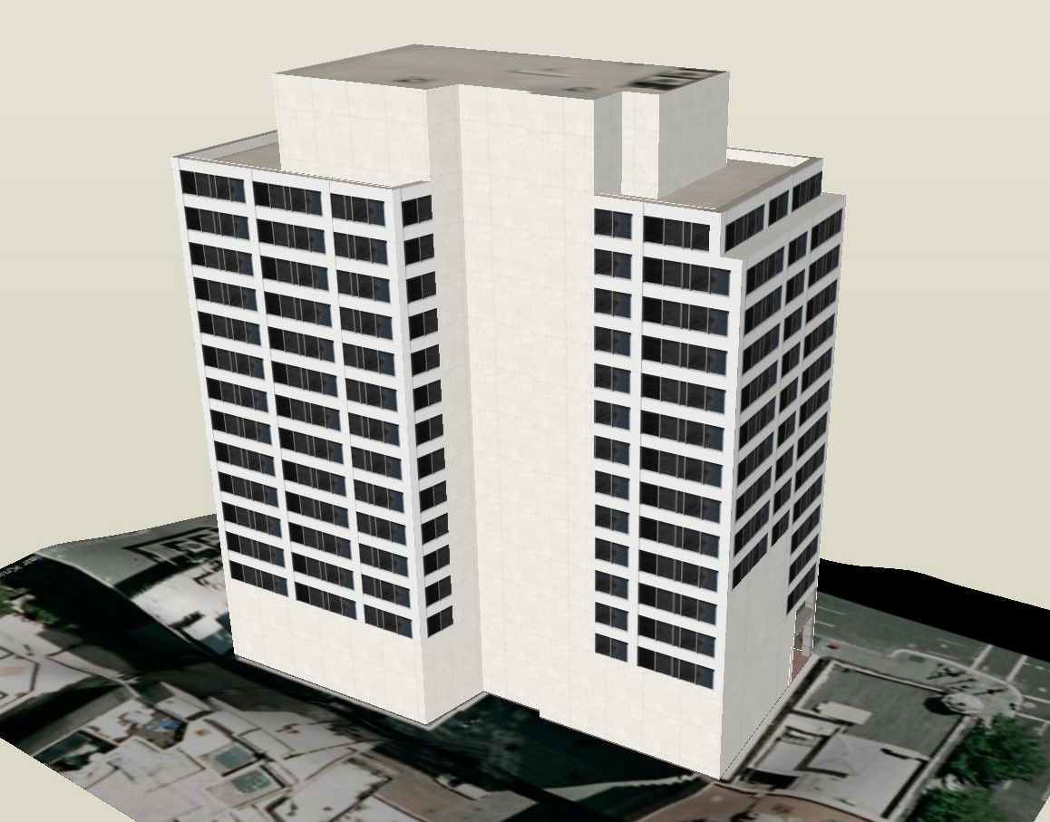 3D drawing of high rise building it include floor levels, terrace level, side view, etc