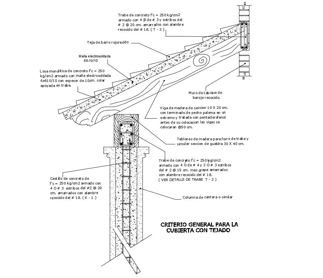 Detail drawing of the roof in dwg file it includes construction detail of roof with tiles
