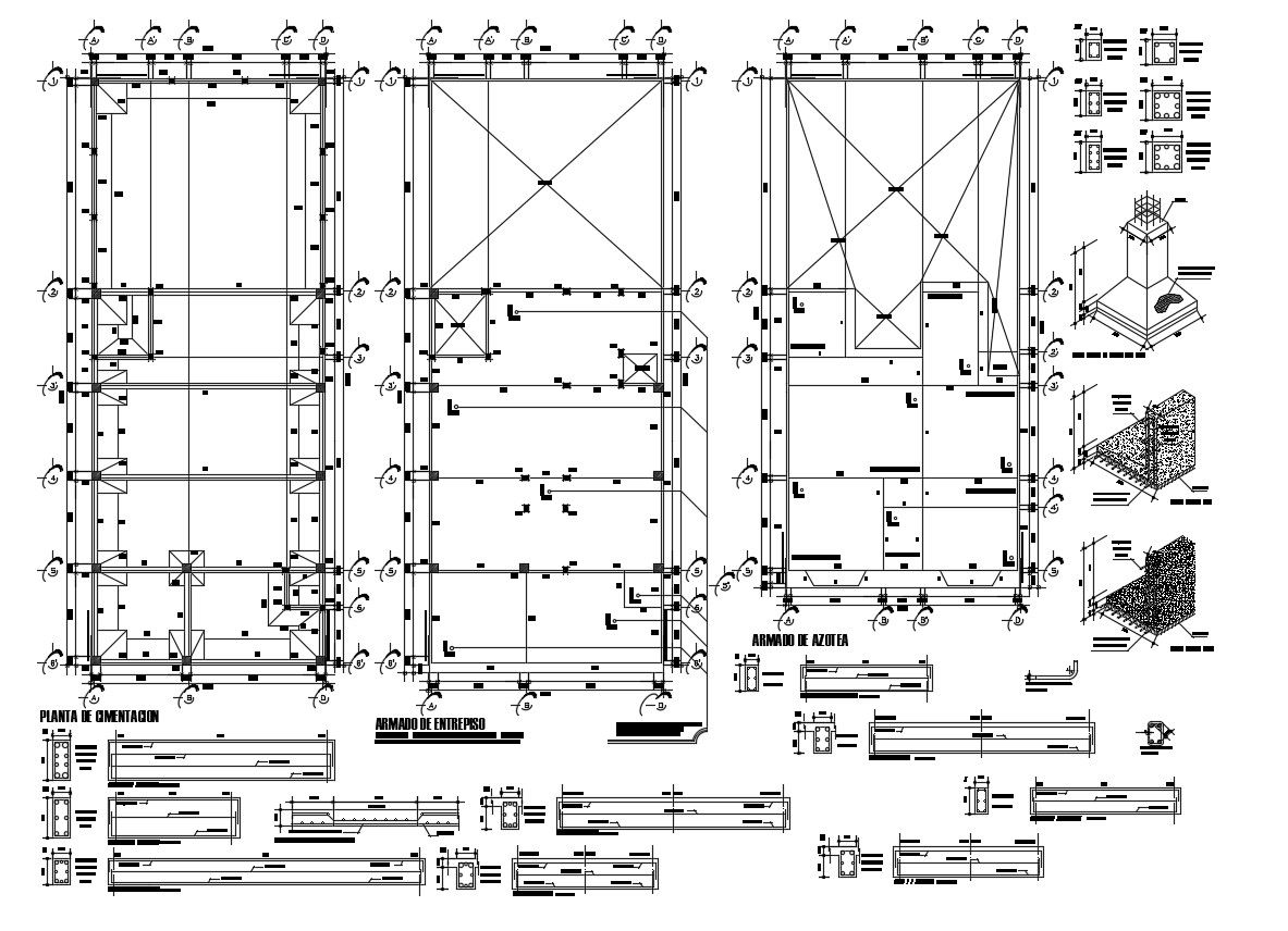 Dwg file of construction detail it includes a foundation plan,mezzanine floor detail, beam,column detail,etc