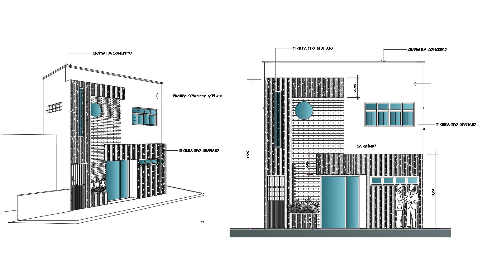 Commercial office elevation in autocad it include front facade,perpective view it also include floor levels with dimensions,front view,etc