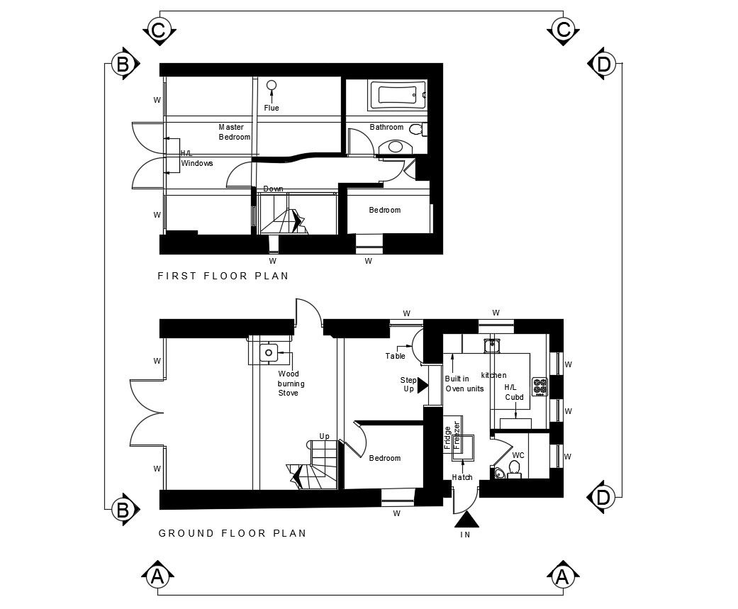 Autocad drawing of residential bungalow it include ground floor, first-floor layout it also includes dining area,kitchen,living room,master bedroom,kids room,balcony,bathroom,etc
