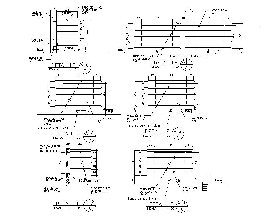 Autocad drawing of construction detail of railing