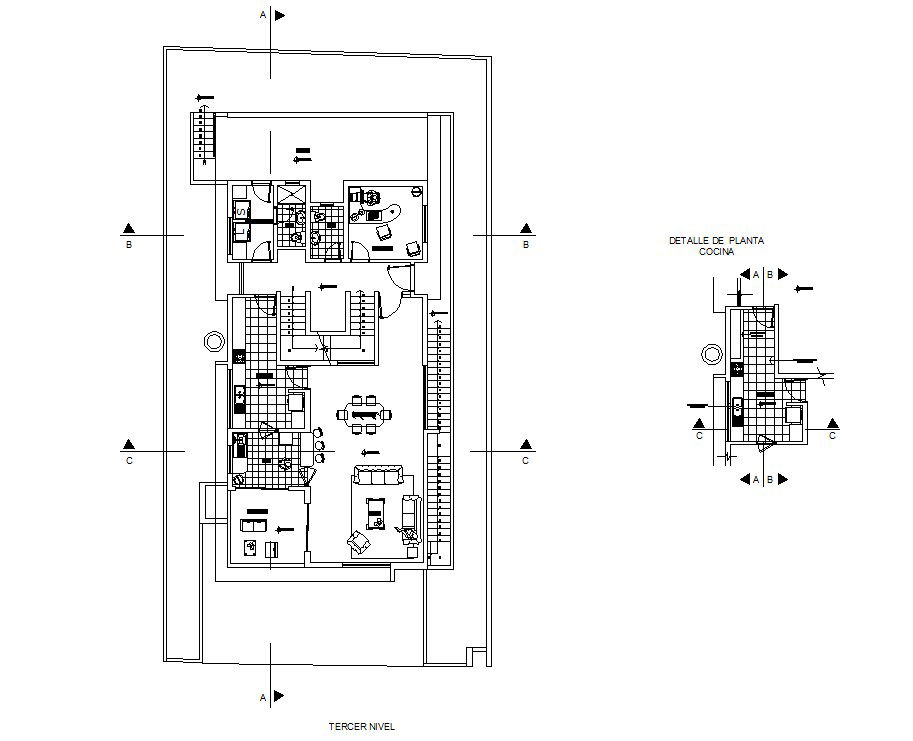 Autocad drawing of residential house it include furniture layout,kitchen layout it also include kitchen,bathroom,master bedroom,dinning area,office, etc