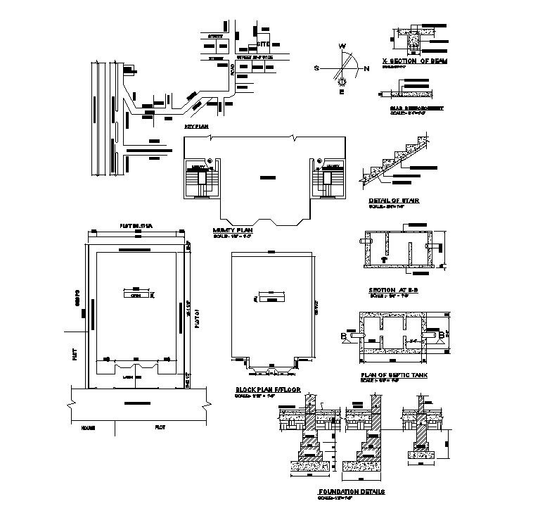 Construction detail in autocad it include block plan,key plan,site plan,it also include foundation detail,septic plan,staircase detail, etc