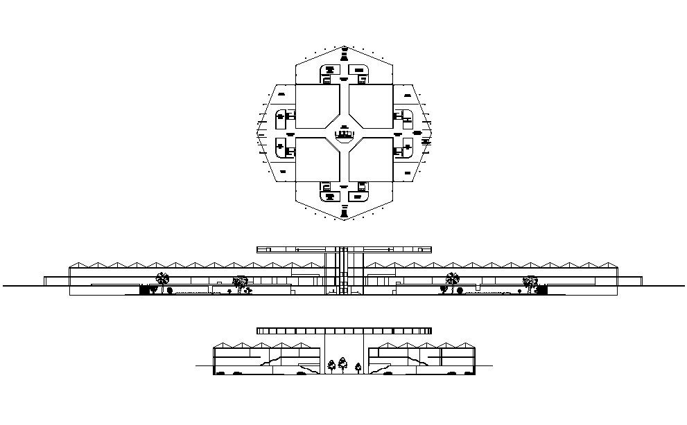 Dwg file of airport section it include site plan,sections,elevations it also include sectional elevations,front facade,etc