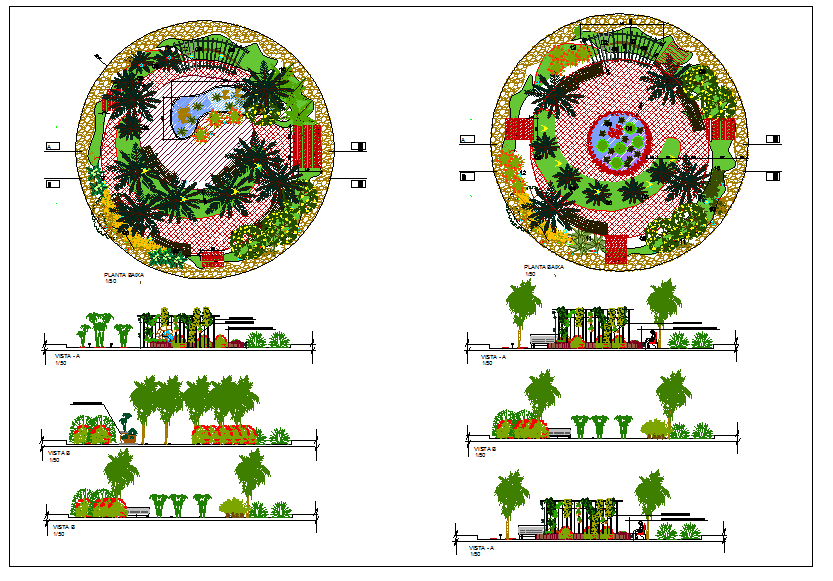 This planing design type of Round plan Design. Project landscape complete with details and specifications of plan and species layout. Town Planing Design Download file, Town Planing Design Detail Download.