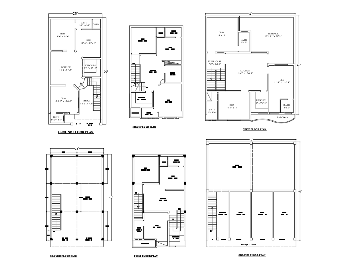 Residential house layout in AutoCAD it include ground floor layout, first-floor layout it also includes kitchen, dining area,drawing room,balcony,bathroom,bedroom,etc