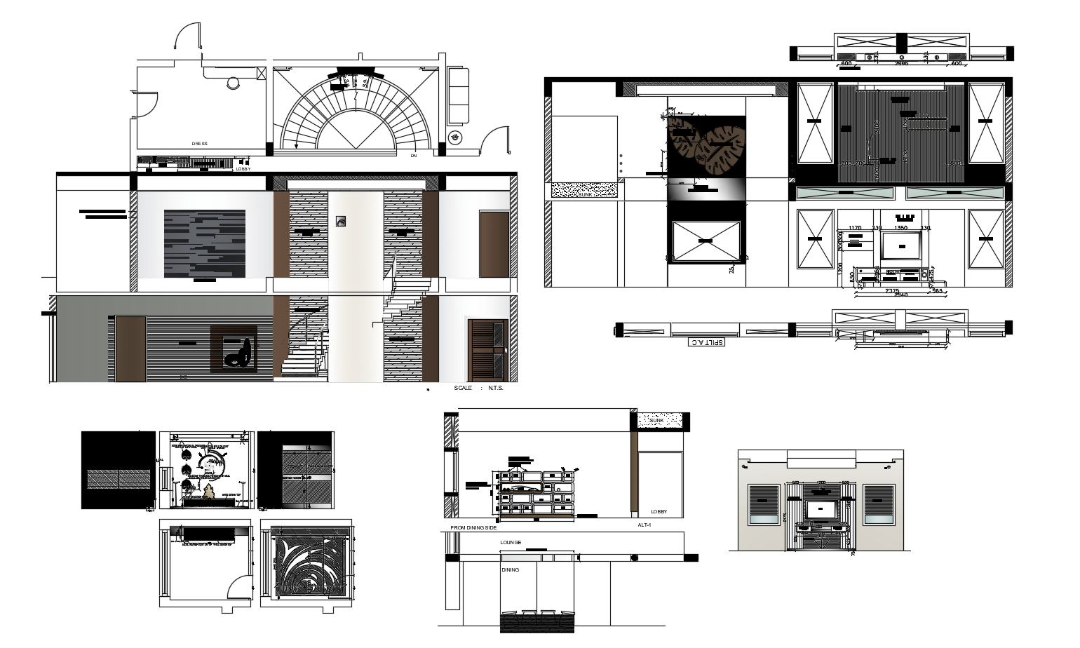 Drawing room layout with section in dwg file it includes puja room details,drawing room it also includes sections,partition detail,etc
