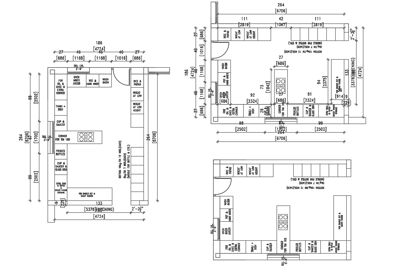 Kitchen layout in dwg file it includes overhead unit layout,lower drawers layout,platform layout it also includes drawers,overhead units,serving counter,etc