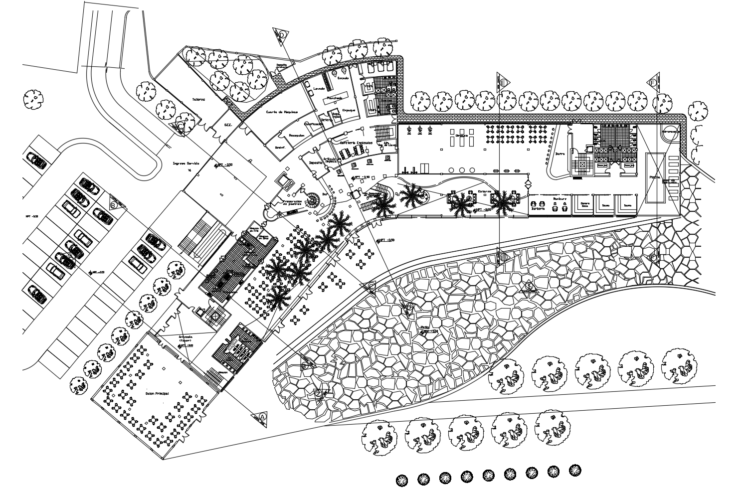 Dwg file of restaurant it includes ground floor,floor level it also includes reception,waiting area,restaurant,seating area,landscaping,etc