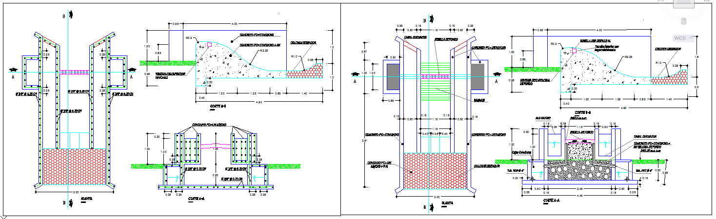 Design in take trough grids for a river catch men with low flow.Canal Plan DWG file, Canal Plan Download file, Canal Plan Design.