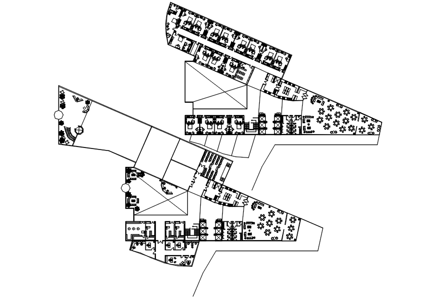 Hotel building plan with furniture details in dwg file