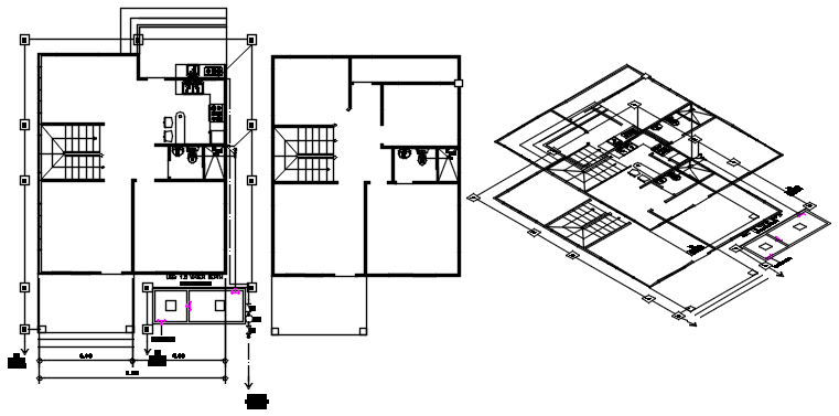 Dwg file of residential bungalow plumbing layout it include ground floor layout, first-floor layout,plumbing layout,isometric view,etc