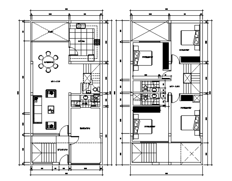 Autocad drawing of residential bungalow it include ground floor layout, first-floor layout it also includes kitchen,dinning,drawing room,master bedroom,balcony,bathroom,kids bedroom,etc