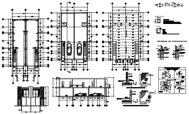 Residential bunglow layout in dwg file it include foundation plan,sectional elevation,front facade,construction detail,etc