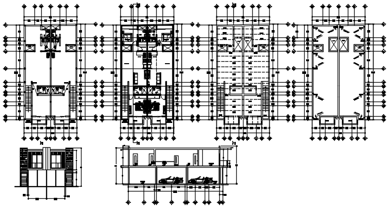 Autocad drawing of residential bungalow layout it include foundation layout,site layout it also includes front facade,sectional elevation,etc