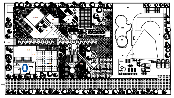 Autocad drawing of site plan it include landscaping area,dance floor,swimming area,etc