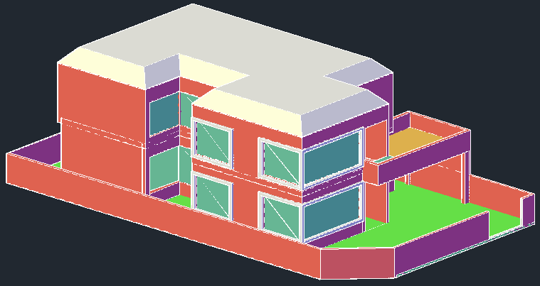 3d drawing of a residential bungalow in AutoCAD