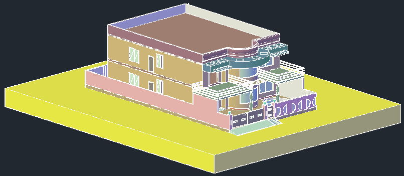 Residential bunglow in 3D it include front facade,floor level,terrace level,etc