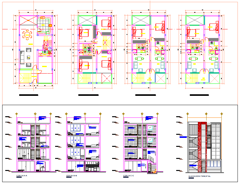floor plan is an overhead view of the completed house. Multi family house DWG File, Multi family house Design File, Multi family house Detail