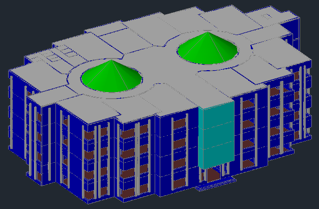 3D drawing of the commercial building in dwg file it include floor level,balcony,doors,windows,etc