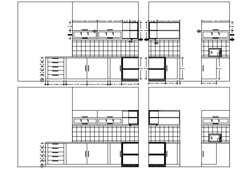 Section drawing of kitchen design in AutoCAD it provides details of sectional drawing of furniture, etc.