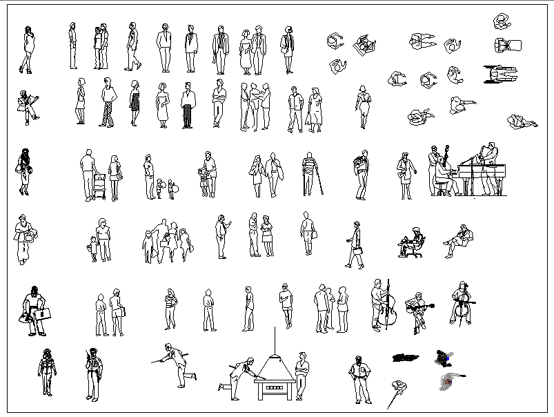 Human figure Block Detail file, Human figure Block DWG File. Different Blocks of people which is use in architecture presentation of project.