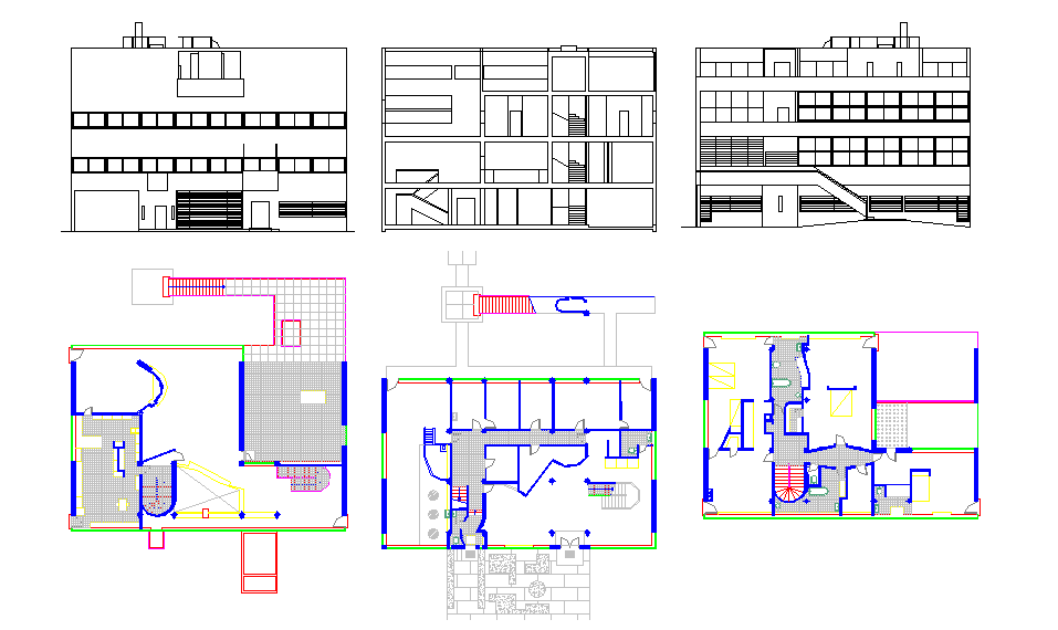 steinhouse- DWG. plant detail, elevation plan and section of house. by Le corbusier.