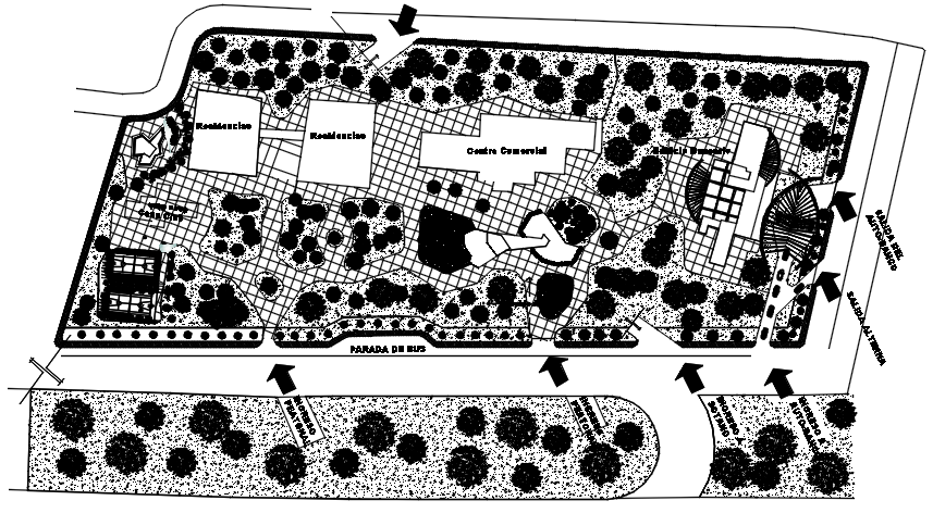 Site plan of bank building design in dwg file