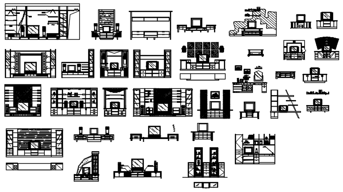 T.V cabinet elevations in dwg file it includes different elevations of it,with the different design of cabinet,etc