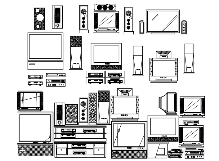 Dwg file of machine block it includes refrigerator, washing machine,t.v cabin,it also include plan,elevation,etc