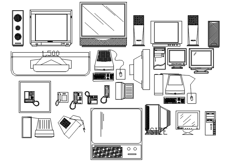 Autocad blocks of tv it include plan,side elevation,top view it also include a.c,cpmputer,telephone,etc