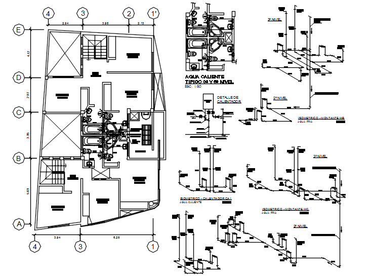 Autocad drawing of the sanitary layout of clinic it include third-floor layout, fourth-floor layout,details of it, isometric view,etc