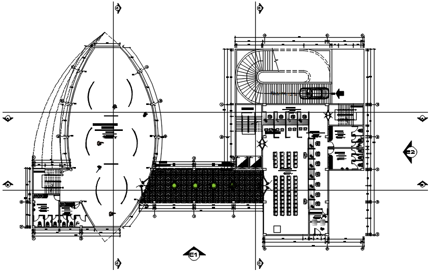 Plan of financial center with detail dimension in dwg file which provides detail of different department in the building, detail of furniture, etc.