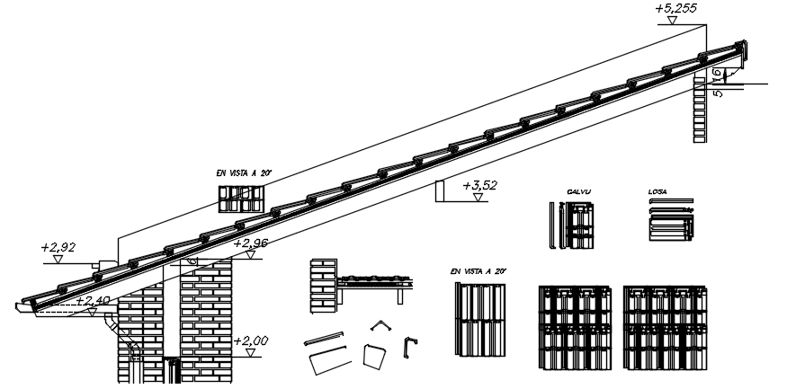 Autocad drawing of tiles roof detail it include roof details,it is made up from terracotta or slate,Roman tiles, construction details of it,etc