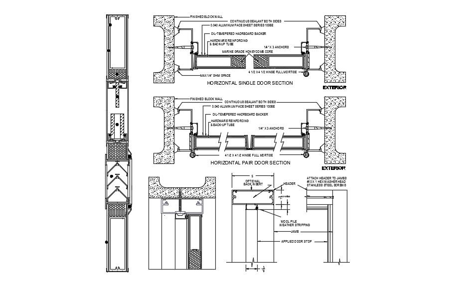 Aluminum flush door detail in dwg file it includes flush details, horizontal section, vertical section,etc