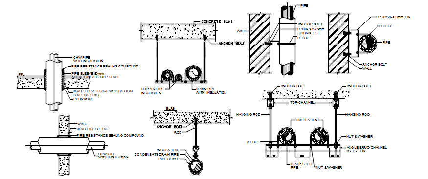 Autocad drawing of plumbing detail it includes drainage pipe, chilled water pipe details,etc