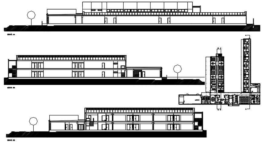 Design of school building in dwg file which provides detail of side elevation, detail of floor level, detail of different floor, etc.