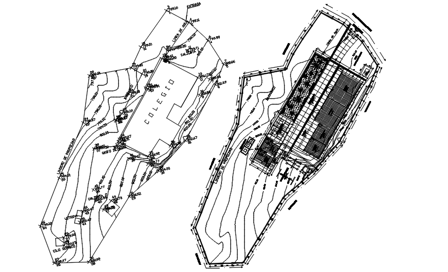 Site plan of school design in AutoCAD which includes detail of different department in the school, detail of garden area, etc.