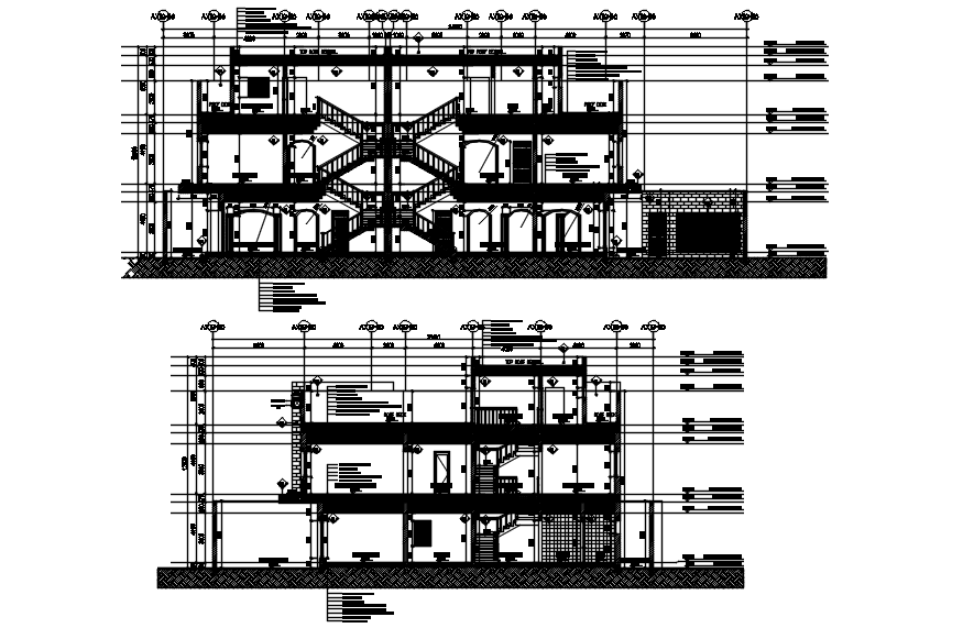 Sectional elevation of residential bunglow in autocad it include sections,floor levels,terrace level,staircase,rooms,etc