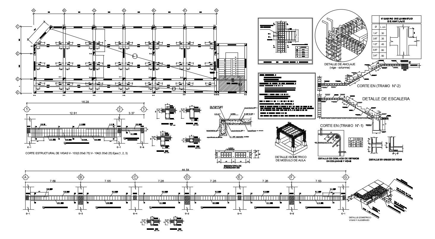 Structural plan of the classroom with detail dimension in dwg file which provides detail of column footing, section detail of footing, etc.