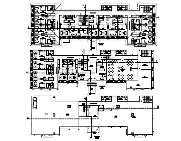 Residential apartment with elevation in AutoCAD which includes detail of hall, bedroom, kitchen, dining area, bathroom, toilet, etc.