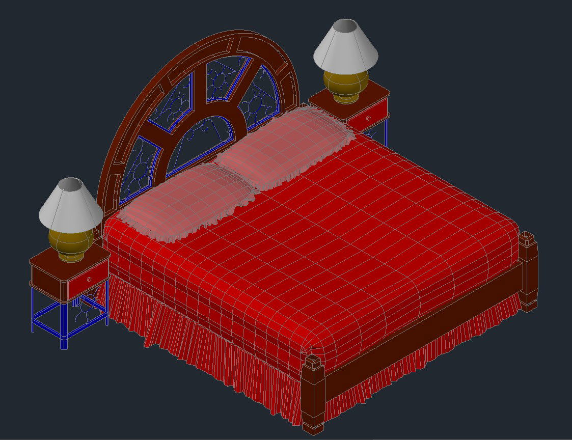 3D drawing of a double bed in AutoCAD