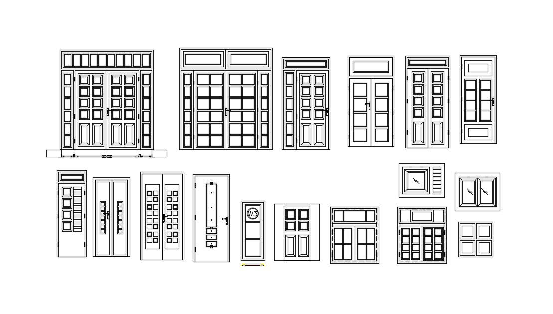Door detail in AutoCAD it includes elevation, plan of door and windows it also includes a front view of doors with a different design,etc
