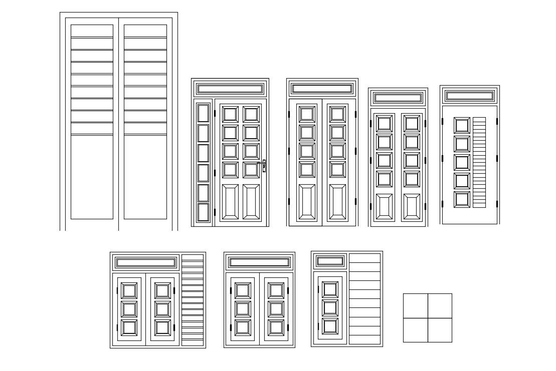 Dwg file of doors detail it to include elevation, plan of door and windows it also includes a front view of doors with a different design,etc