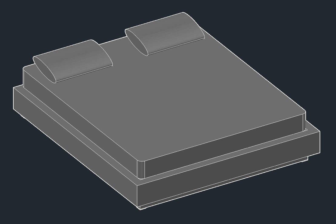 Double bed 3D drawing in dwg file