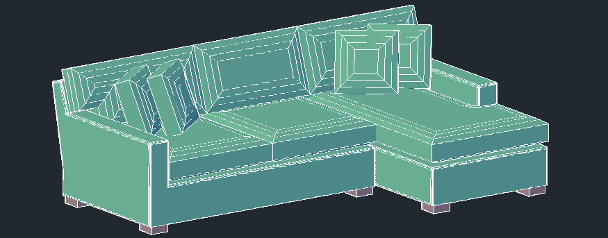3D drawing of the sofa in AutoCAD it includes L shaped sofa, backrest, leather material,etc
